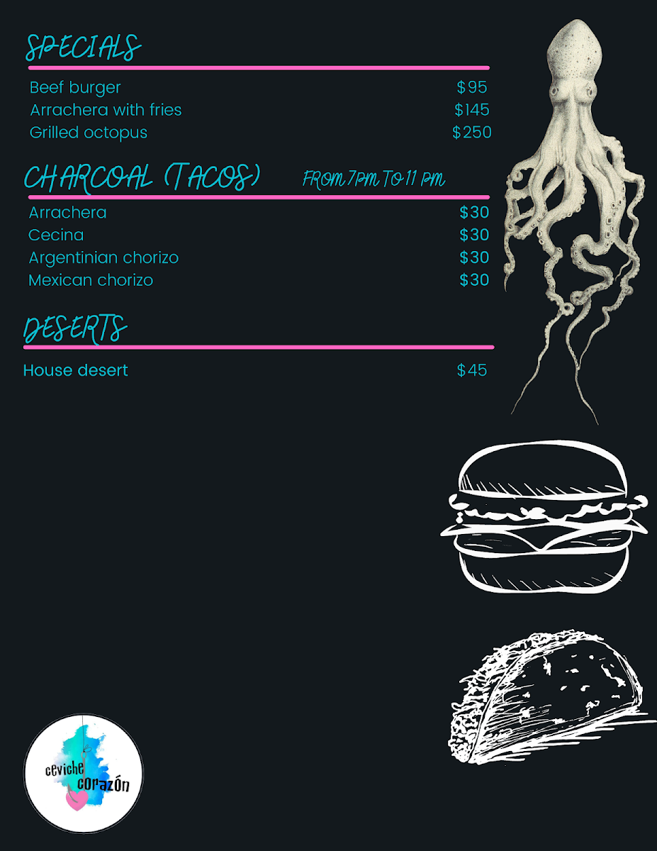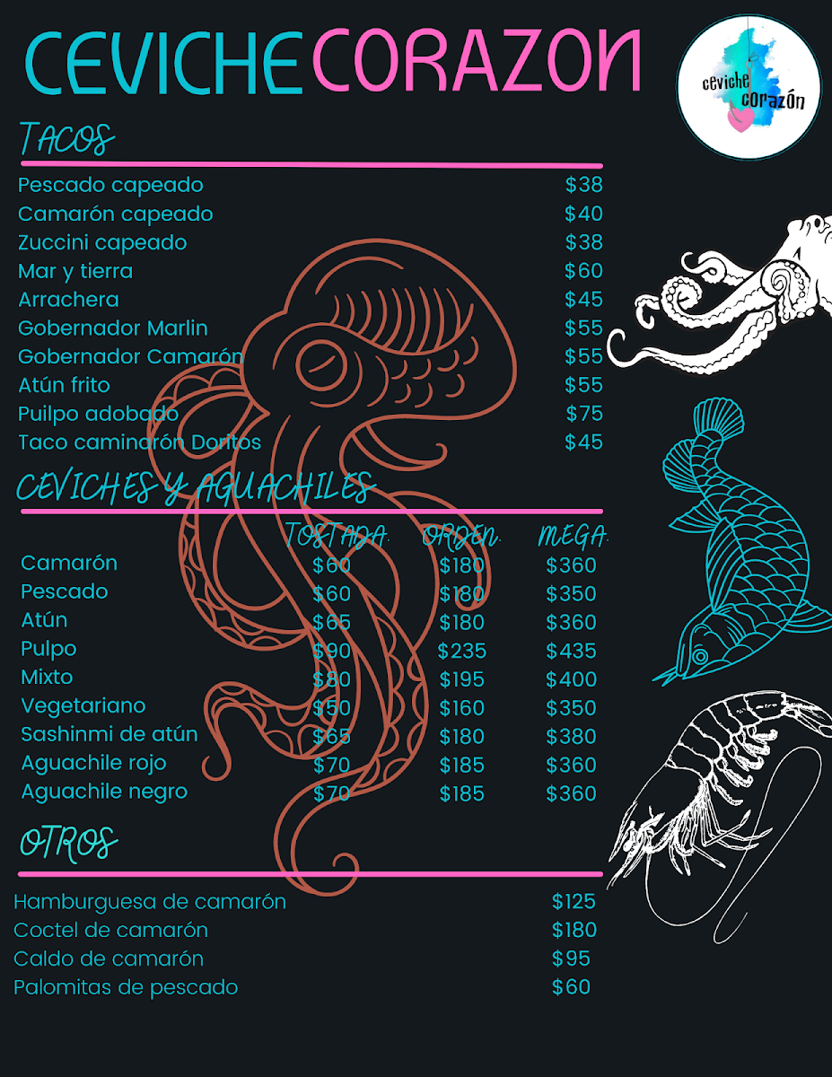 Welcome to Ceviche Corazon, a standout seafood restaurant nestled in the tranquil enclave of Playa del Carmen, at 5 Av. Nte. 52. Here, culinary delights meet a vibrant atmosphere, making it a perfect escape from the bustling main roads. The menu boasts an enticing selection, featuring fresh ceviches that are lauded as some of the best in the area, alongside mouthwatering fish and shrimp tacos.
